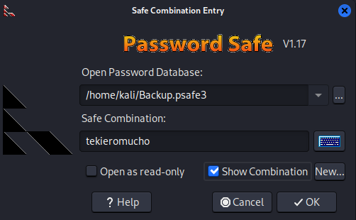 Retrieve the Backup.psafe3 file, output it to a crackable format and crack the hash using JohnTheRipper: