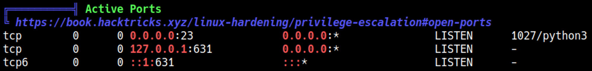 Linpeas discovers a service that is running on port 631 that can only be accessed from the localhost.