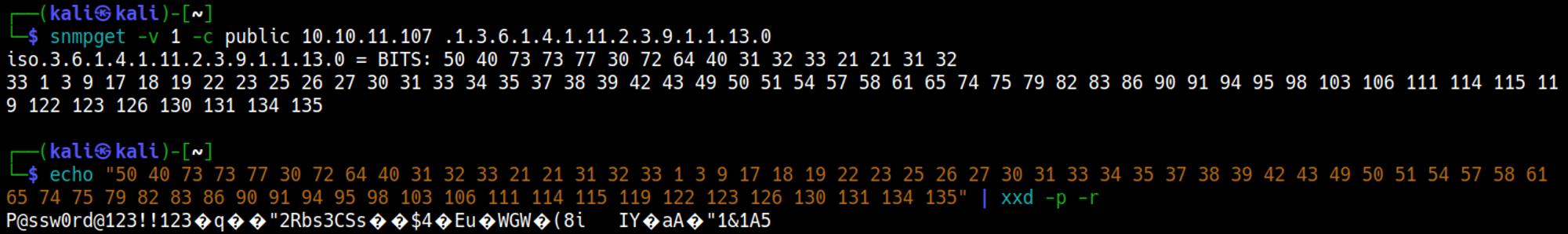 As a result of the password disclosure vulnerability, the extracted hex string decodes to the plaintext password P@ssw0rd@123!!123.