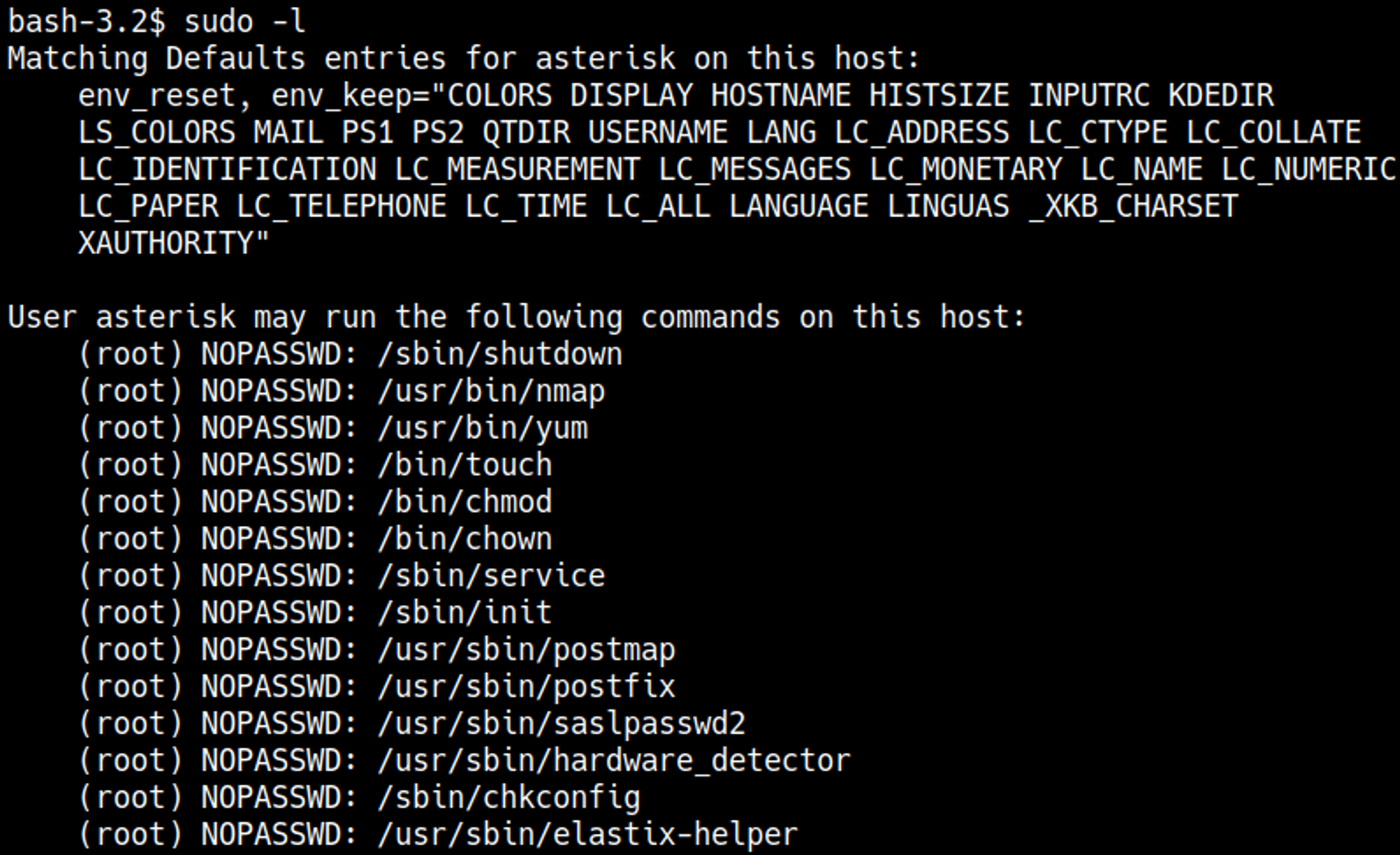 Sudo -l reveals a lot of binaries that can be executed with sudo.
