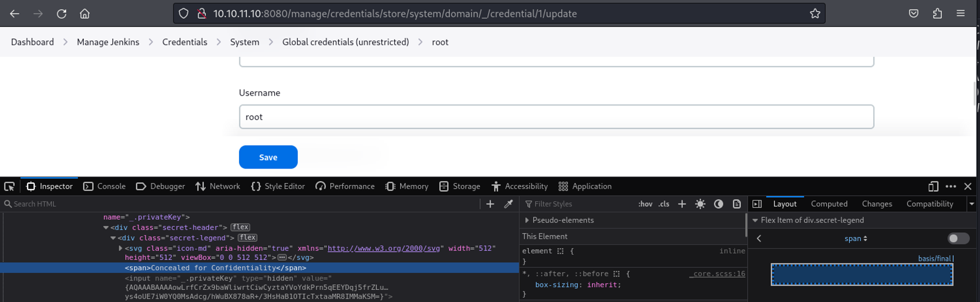 Whilst enumerating the Jenkins credentials I came across an SSH private key of the root user.