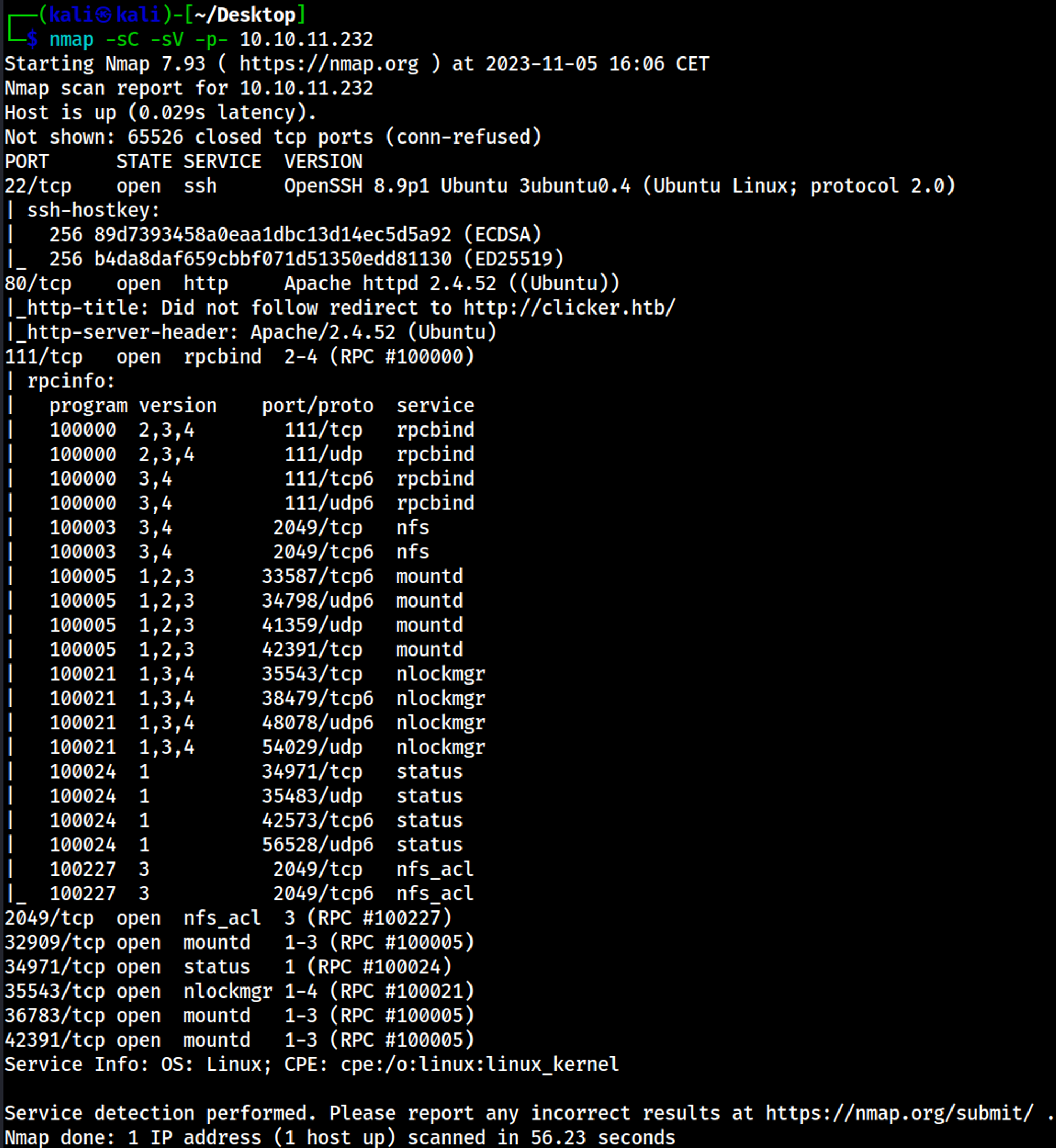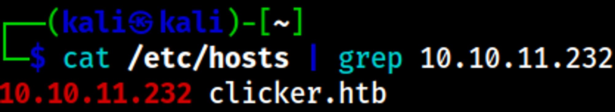 The web site redirects to the clicker.htb domain, add the domain to the hosts file: