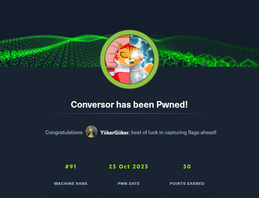 Conversor is an Easy rated Linux machine on HTB.