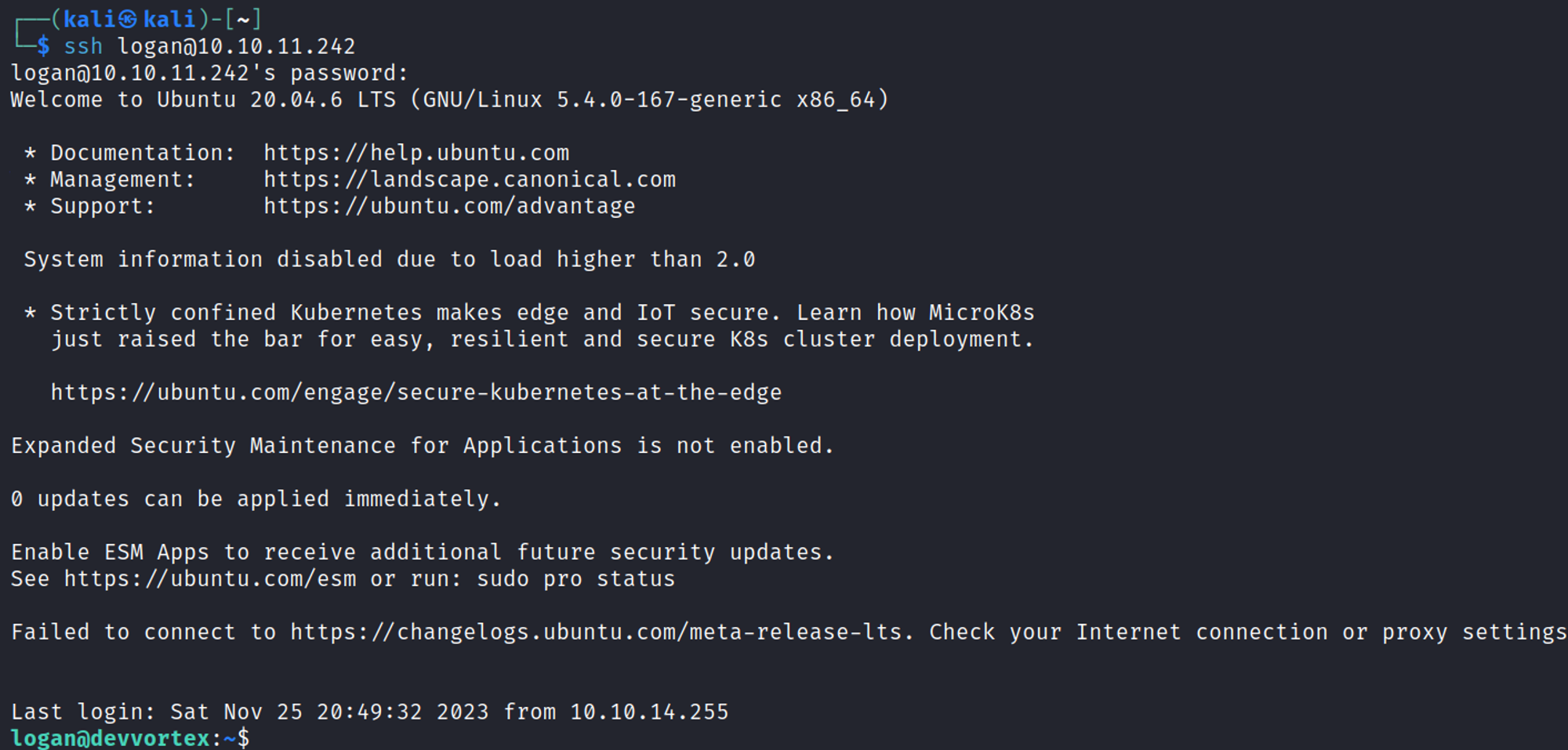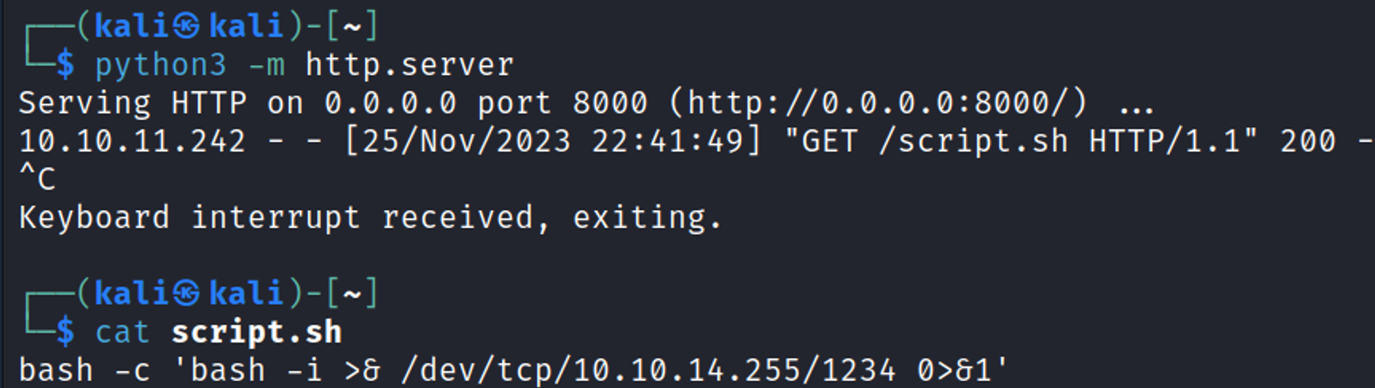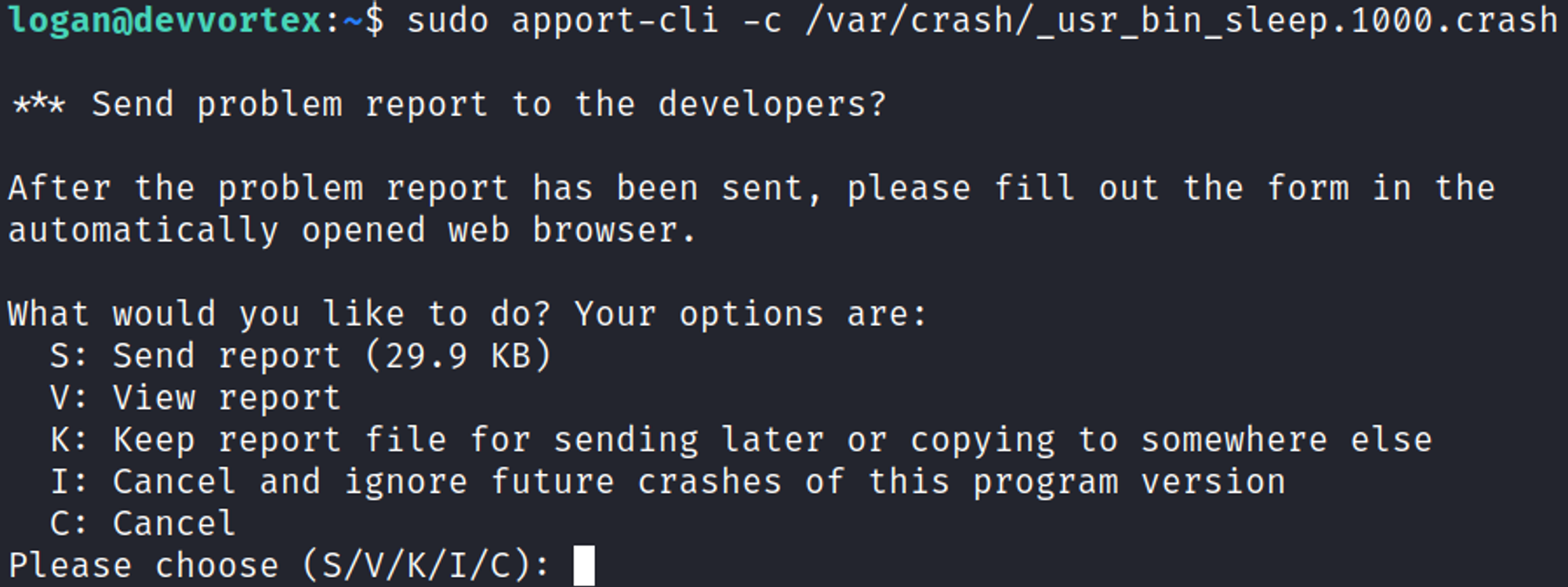 Here, we press V. After the file has opened, we can get a shell by typing !/bin/bash.