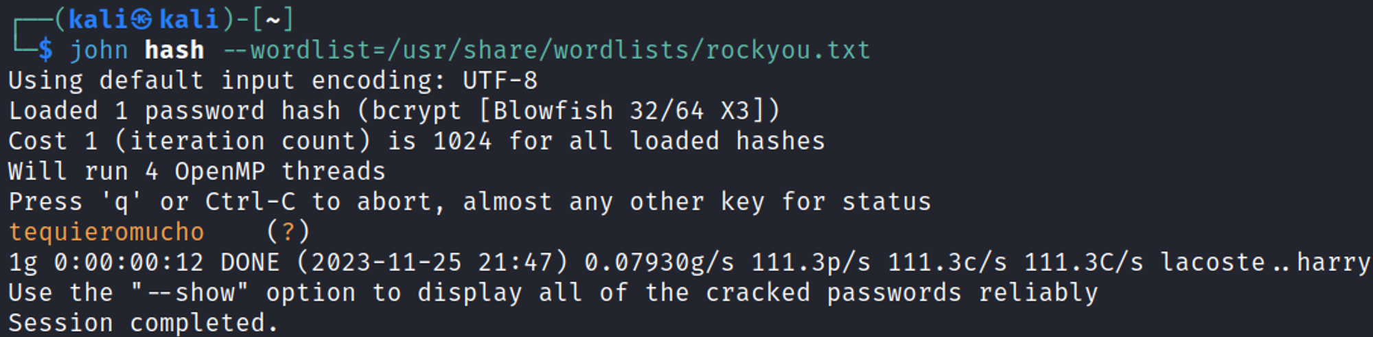 The password hash can be cracked using JohnTheRipper: tequieromucho.