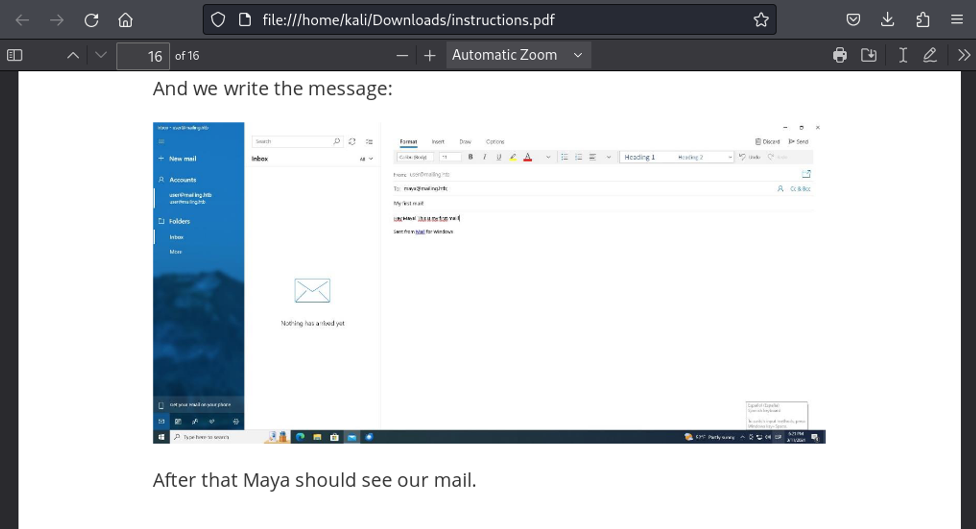 Since we are able to authenticate and send emails as the administrator user perhaps we can look for exploits. We end up finding the following RCE. All there is left to do is find out who to send the mail to. Conveniently in the instructions.pdf file located on the main landing page it mentions the Maya user: