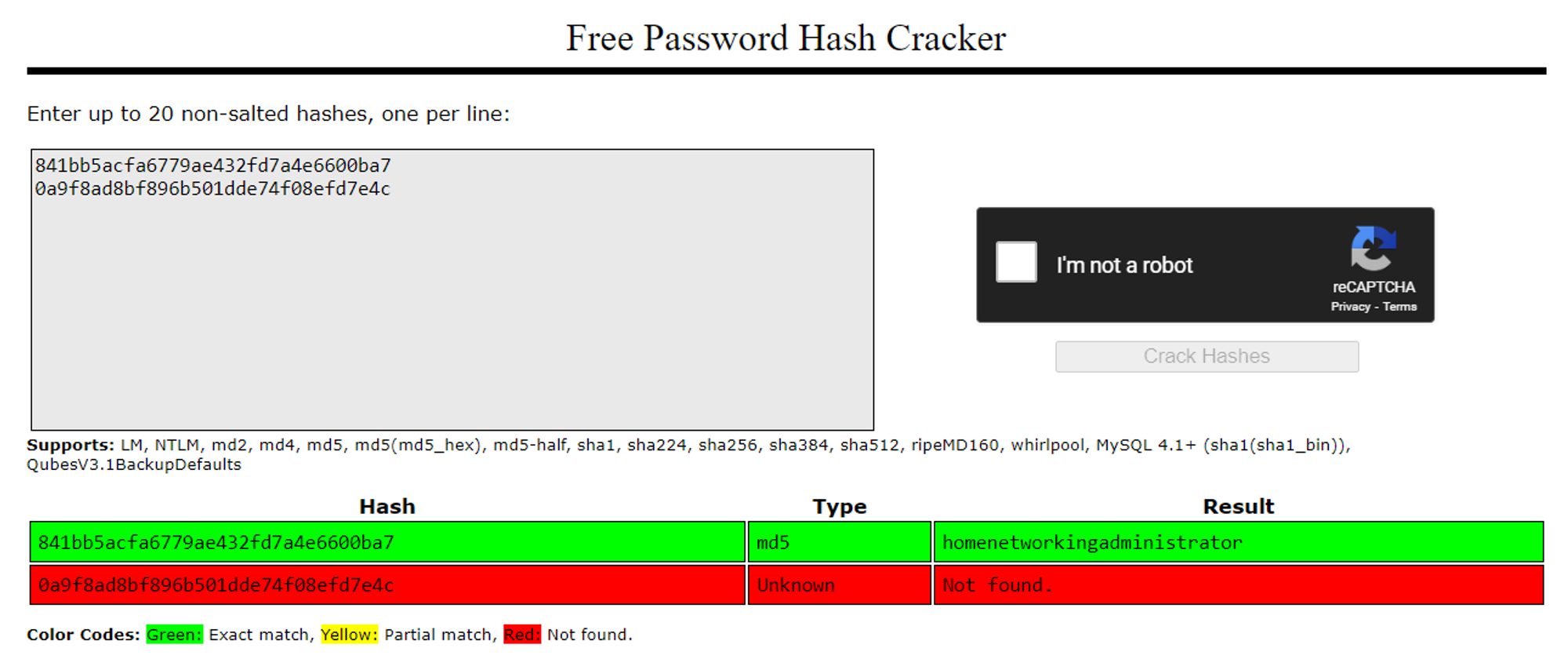 Using crackstation we are able to crack the administrator password: homenetworkingadministrator.