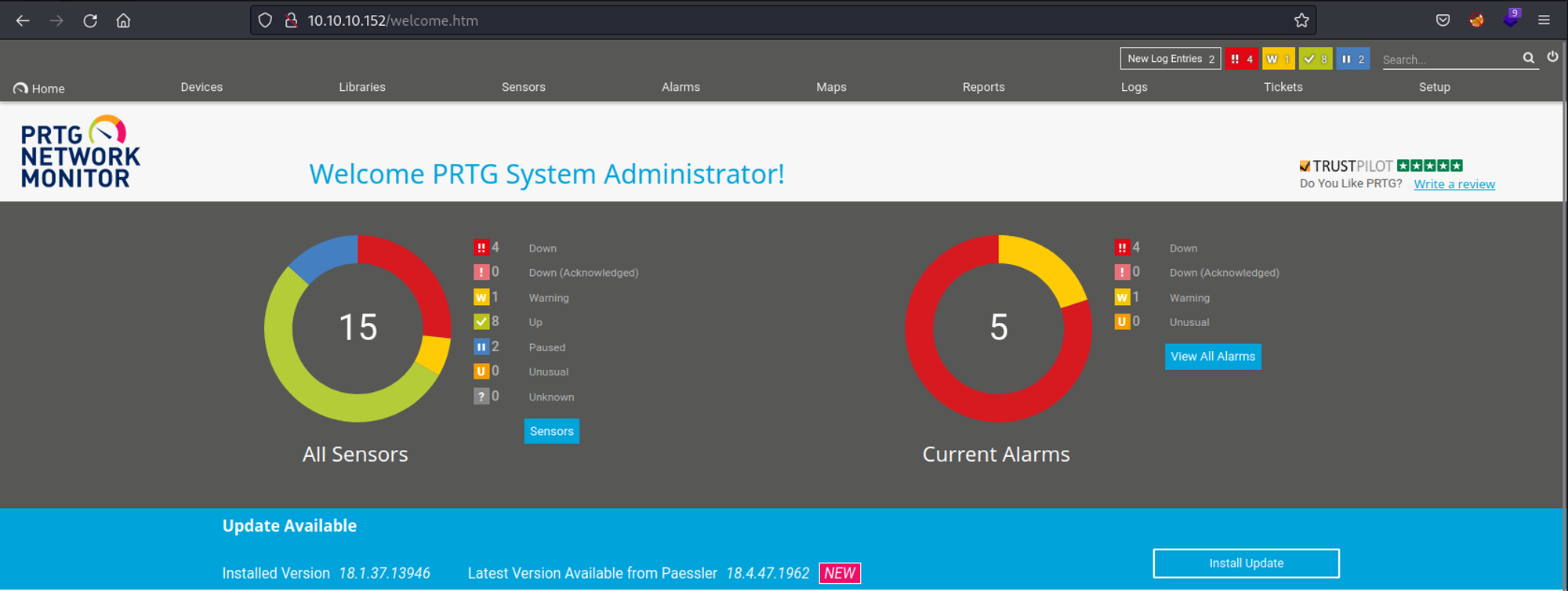 These credentials however didn’t work, I ended up checking the release date of the machine and tried to update the password to the year it was released (which worked): prtgadmin:PrTg@dmin2019.