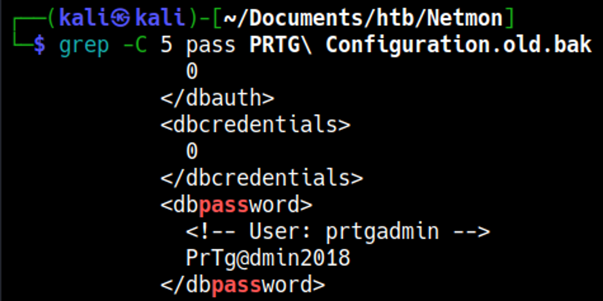 Looking through the file we find a username and password that we can use to log in: prtgadmin:PrTg@dmin2018.
