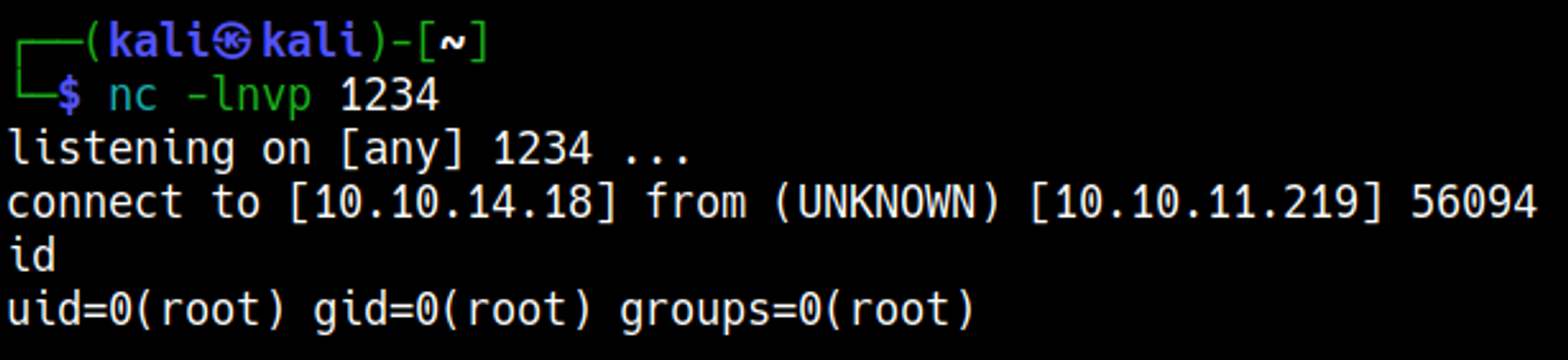 Setup a nc listener and transfer the payload into the /shrunk folder on the target host.