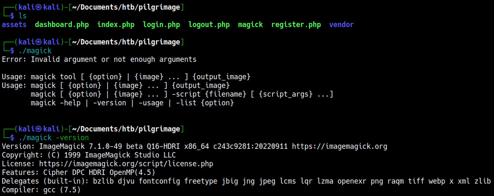 Looking through the files we find an outdated version of ImageMagick that is being used to convert the images. This version of ImageMagick is vulnerable to LFI (local file inclusion) CVE-2022-44268.