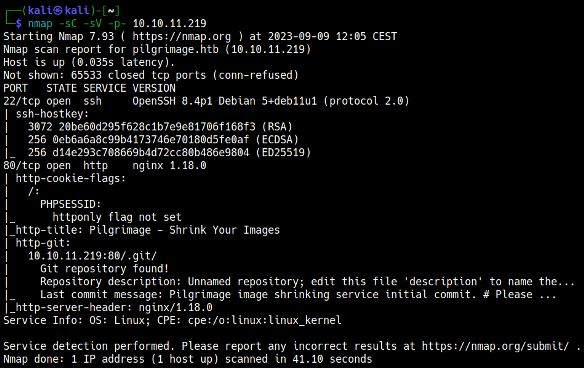 In the Nmap scan we find a .git repository, we can retrieve the content in the.git directory using git-dumper.