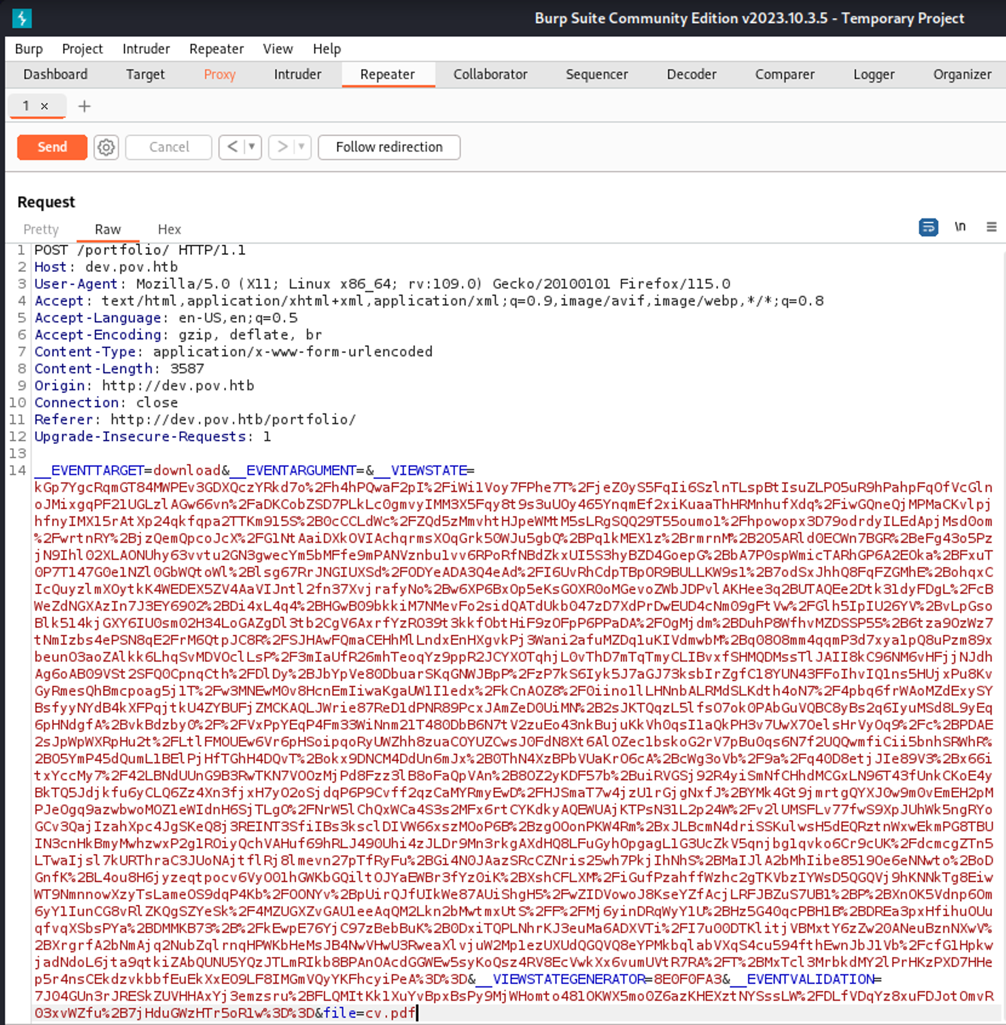 Enumerate dev.pov.htb