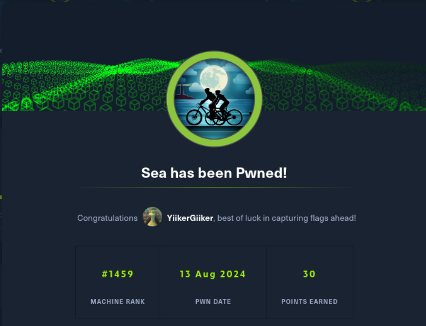 Sea is an Easy rated Linux machine on HTB.