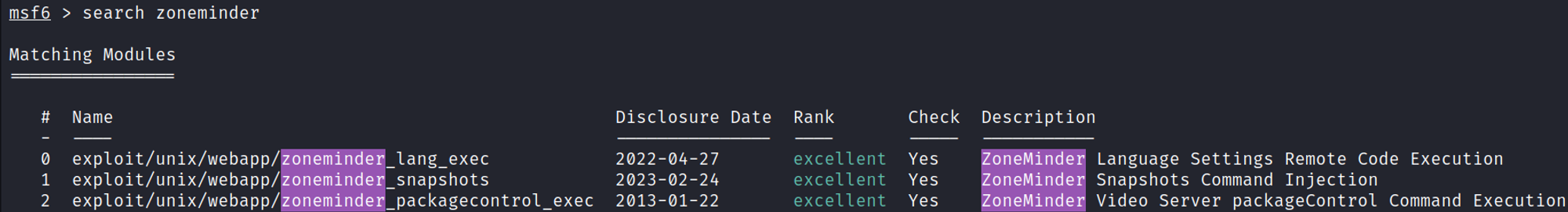 Zoneminder has Metasploit modules.