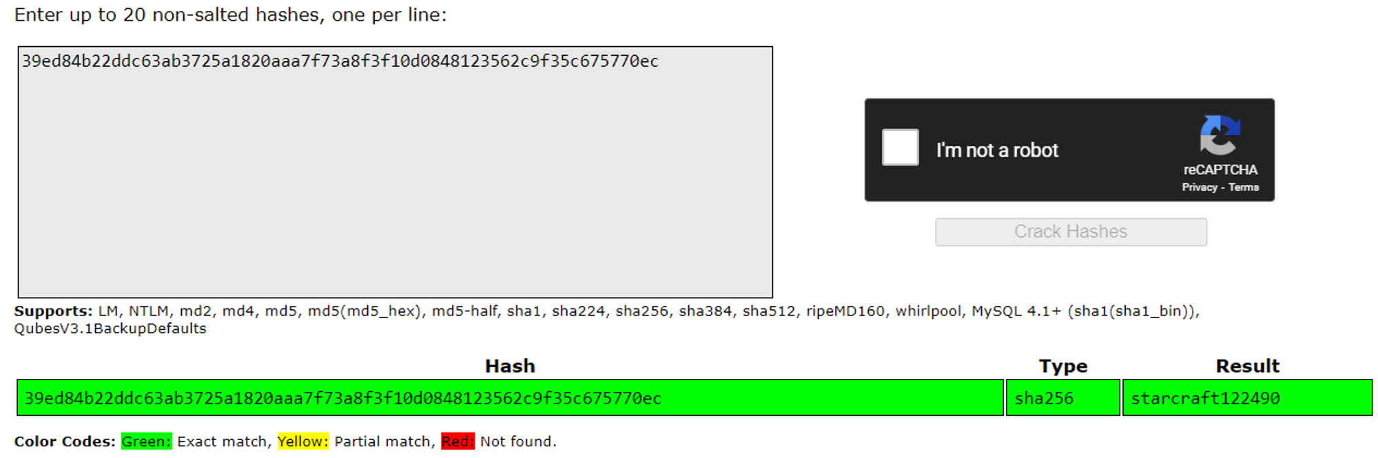 We can use crackstation.net to bruteforce the password matthew:starcraft122490.