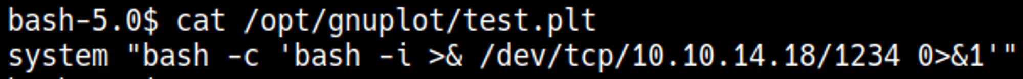 Since we have write permissions in the gnuplot directory we can easily create a file with a reverse shell payload that will be executed as root.