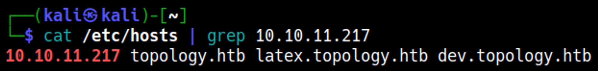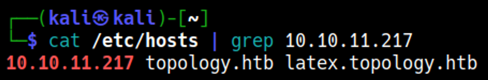 On the main page there is a link to http://latex.topology.htb/equation.php.